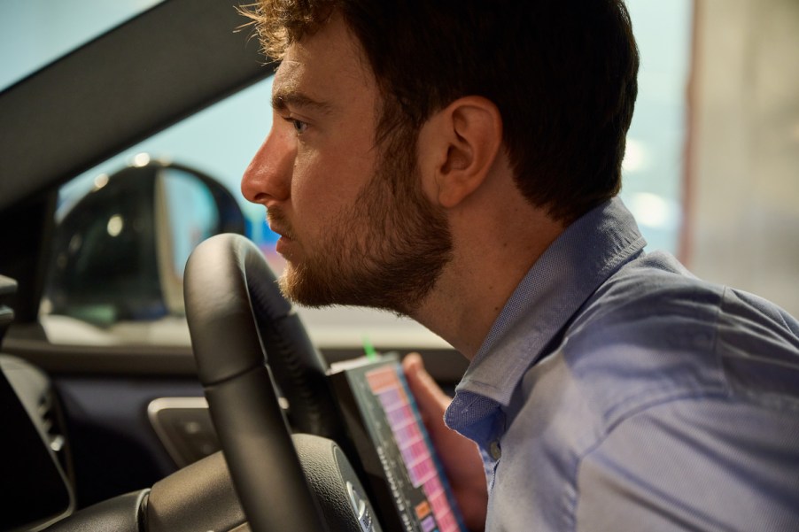 Eastland sniffs every interior area of the car in varying conditions to get the most accurate aroma. In addition to smelling the interior materials, he evaluates each for risks of allergic reactions. Eastland says that smell is an often overlooked yet essential part of the driving experience, especially in whisper-quiet luxury models.