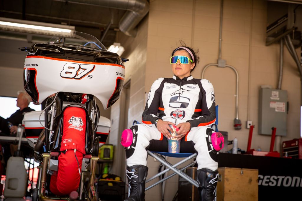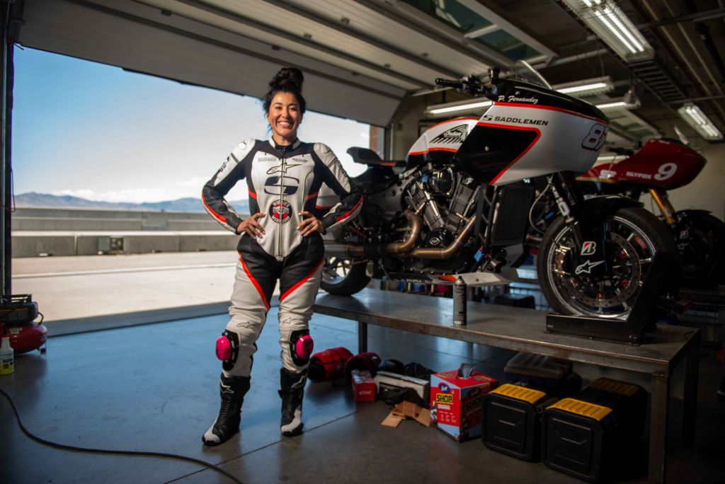 However, none of this has stopped Patricia Fernandez from racing. She got a feel for the riding style by riding West’s Harley-Davidson King of the Baggers bike. Though that might be putting her test rides lightly, seeing as she ground down his bike’s shifter, she said with a laugh. Being able to test and develop new racing parts for the Challenger and other baggers is also an upside of competing. “I’m doing something that’s literally never been done,” she gushes.