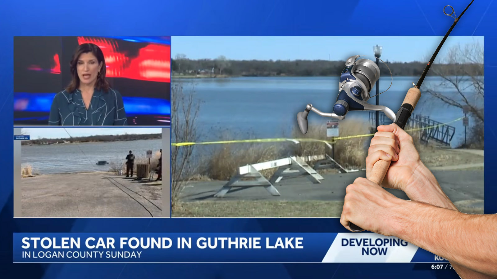 The boat ramp is closed. That’s the message some folks received over the weekend at Guthrie Lake in Oklahoma. That’s because an Oklahoma Highway Patrol dive team was busy using the ramp to retrieve a stolen vehicle that they found submerged in the lake over the weekend.