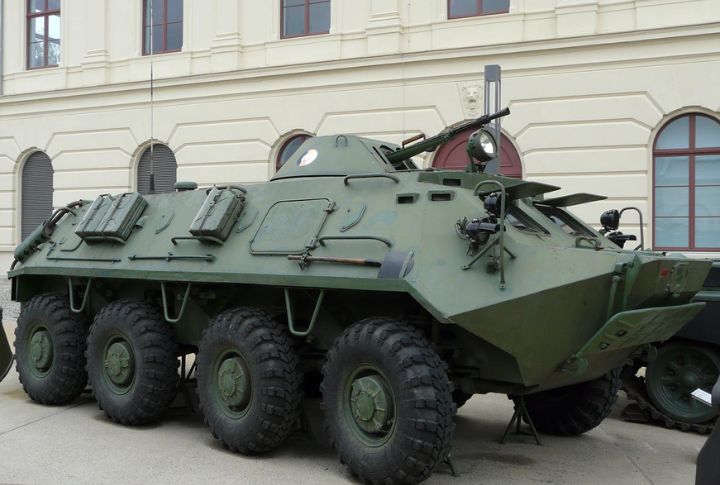 The Soviet Union’s BTR-60 was its first mass-produced, 8-wheeled armored personnel carrier (APC). It had a 7.62 mm coaxial machine gun, a 14.5 mm KPVT heavy machine gun, and a carrying capacity of about 14 troops. Despite its age, this tank stayed active in Afghanistan and Ukraine.