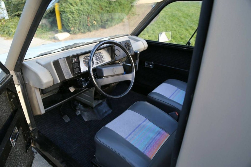 Inside a modular dash greets you and rainbow patterned seats somehow look show car-like