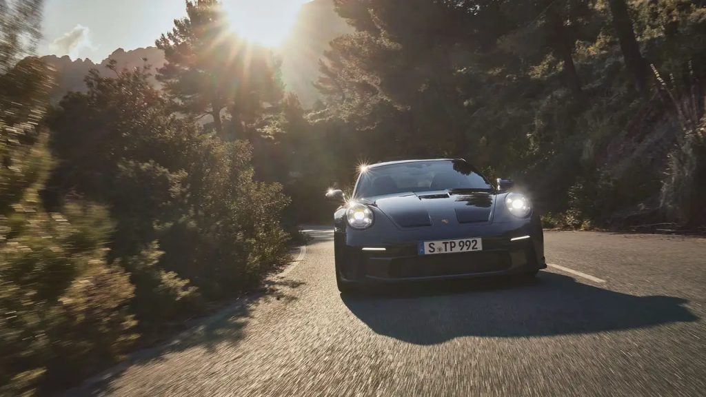 Porsche says the 911 GT3 with the touring package will be available in early 2022. What’s different with the touring package? The GT3 Touring has a naturally aspirated 4.0L flat-six engine getting 502 hp and 346 lb-ft. The biggest exterior difference is that the Touring does not have a wing-like the other GT3. Instead, this one has an automatically adjusted rear spoiler. It comes equipped with the performance-oriented 6-speed GT Sport manual transmission.