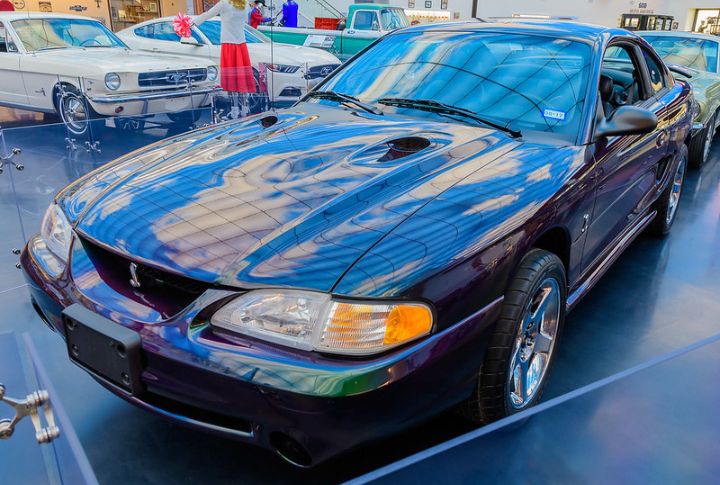 This model is called “Mystic” for a reason: besides its expensive paint, the car always seemed to change color when viewed from a different angle. Key qualities of the 1996 Mystic Cobra’s 4.6-liter DOHC V8 engine include a modular aluminum block, a dual overhead camshaft, and a free-flowing exhaust unit. Paired with a Borg-Warner T-45 5-speed manual transmission, the engine produces 305 horsepower and 300 lb-ft of torque.