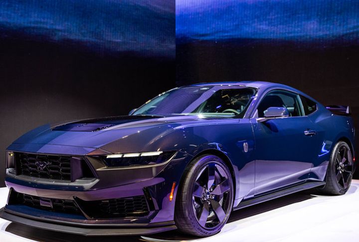 The 2024 Ford Mustang Dark Horse combines modern technology with raw output. The engine features a dual-throttle body and a uniquely tuned exhaust unit that lets out a distinctive sound. A naturally aspirated 5.0-liter Coyote V8 engine delivers 418 lb-ft of torque and 500 horsepower.