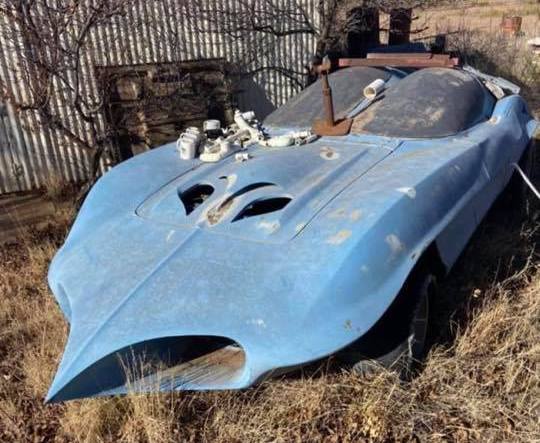 This looks to be a drag racing refugee. A lot of Corvettes were raced so this should come as no surprise. What is surprising is how complete it is. Right down to the top. Yeah, the bumpers are missing but those are easy.