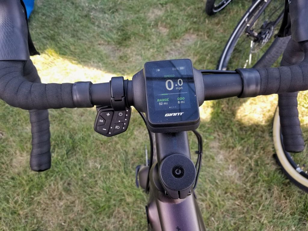 The 2021 Giant Revolt E+ Pro’s handlebar-mounted display and controller | Matthew Skwarczek, MotorBiscuit