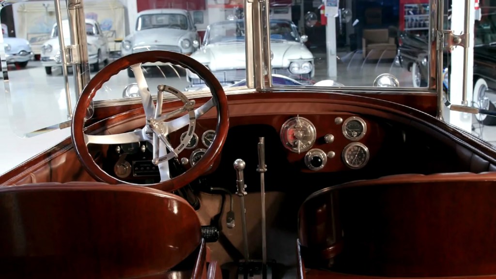 This antique car has been restored twice, though it’s 100% original. The only modern-day part is the battery. It lacks front brakes, you operate the throttle by hand, and the interior clock is hand-wound.