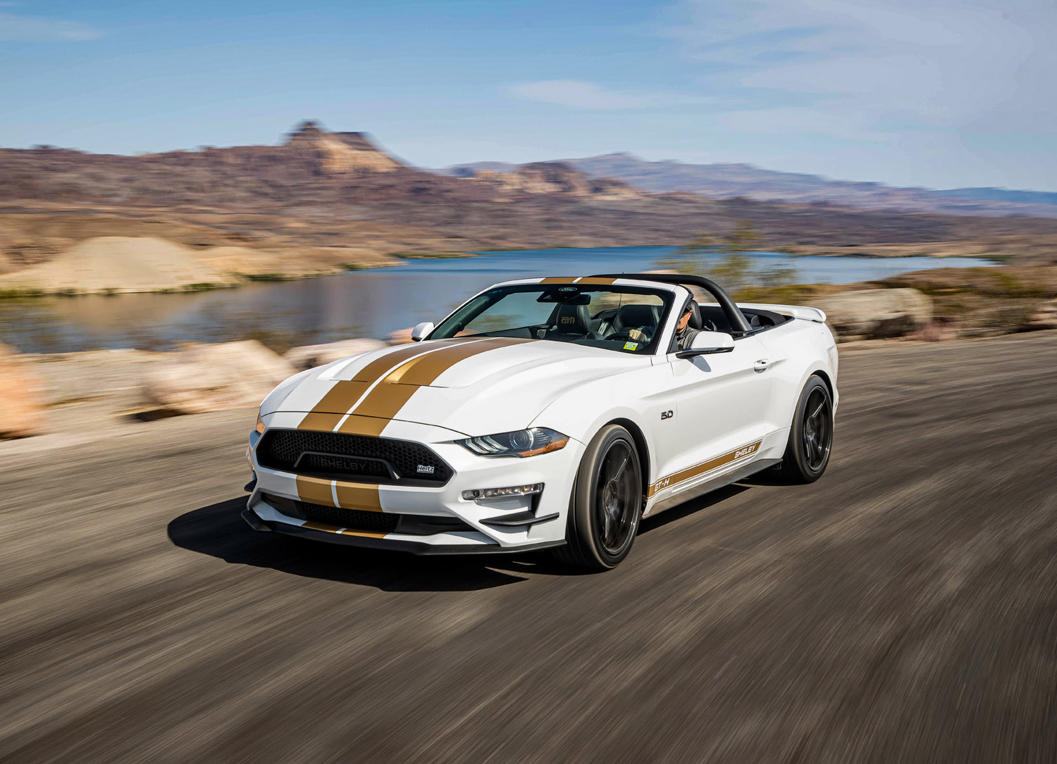 Additionally, Shelby GT-H fastbacks and convertibles based on the standard Mustang GT platform are also available for rent. These cars feature Borla cat-back exhaust systems and staggered wheels. Additionally, they wear custom paint jobs with traditional gold “Le Mans” stripes that date back to the original Shelby/Hertz collaboration.