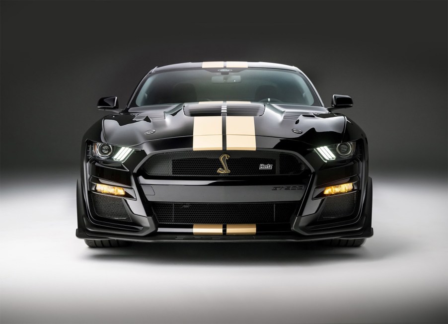 According to Mustang Specs, all of them were automatic transmission models. However, all came with the Ford 289 cubic-inch V8 under the hood, just like standard model GT350s. Shelby built 1,000 of these Mustangs, and nearly all of them were black with gold racing stripes. However, Shelby painted a select handful of them Sapphire Blue, Candy Apple Red, Ivy Green, and even Wimbledon White.