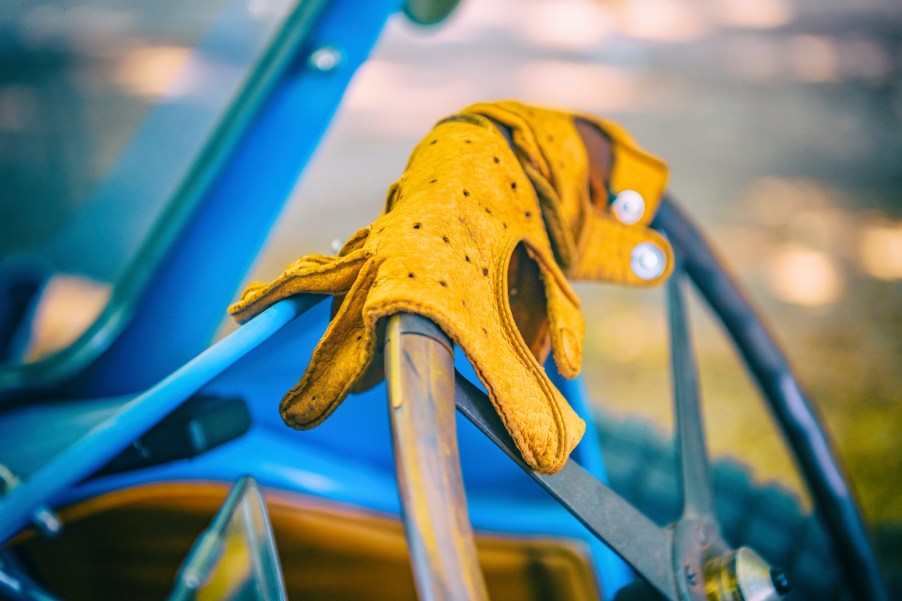 Driving gloves have been around since cars were invented. In a vehicle without a roof or a windshield, the driver wore plenty of protective clothing. That included a long duster coat, goggles, a cap, a scarf, and gloves, Car and Driver explains. Gloves helped protect the hands while cranking the car to start it and while holding the wooden steering wheel that didn’t yet have power steering, The News Wheel reports. They played a protective role like motorcycle gloves today.