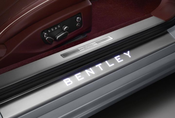 Illuminated treadplates, found only in Bentleys, light up when the door opens and welcomes passengers with a soft glow. The illumination can be customized with different colors and personalized inscriptions. Furthermore, the treadplates are crafted with the same precision and quality as the rest of the vehicle.