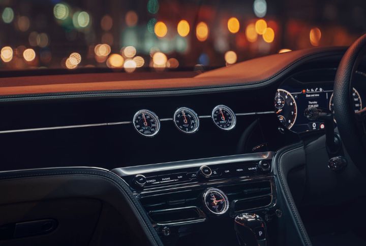 The Bentley Rotating Display is an innovative feature that showcases the brand’s seamless integration of technology and luxury. At the push of a button, the central touchscreen of the dashboard rotates to reveal three facets: a high-resolution digital display, a set of three elegant analog dials, and a veneer panel that blends seamlessly with the dashboard. This feature allows drivers to choose between modern digital interfaces or traditional analog elegance.