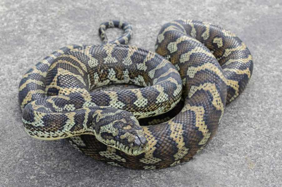 Mechanic shop discovers a Coastal Carpet Python with a very full belly