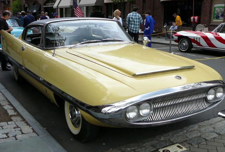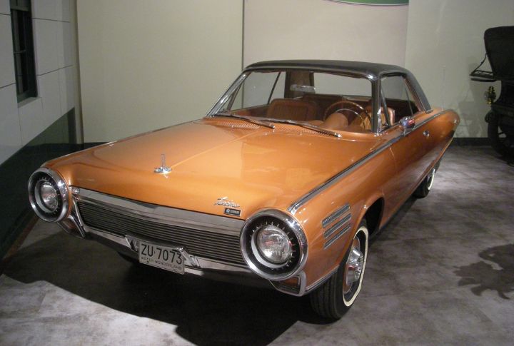 Imagine starting your car with a whoosh. This 1963 bronze dream could run on tequila, perfume, or peanut oil. Powered by a jet turbine engine that Chrysler tested in a fleet of 55 cars, it emits the sound of a vacuum cleaner cranked to its highest speed.