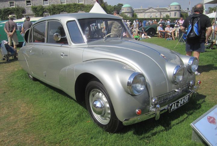 Streamlined yet unusual, the Czech-built Tatra T87 emerged in the 1930s and featured a rear-mounted air-cooled V8 engine. Nazi officers adored it; until too many died in crashes due to its tail-heavy design. Leno’s perfectly preserved model feels like a time capsule from a future that never came to pass.