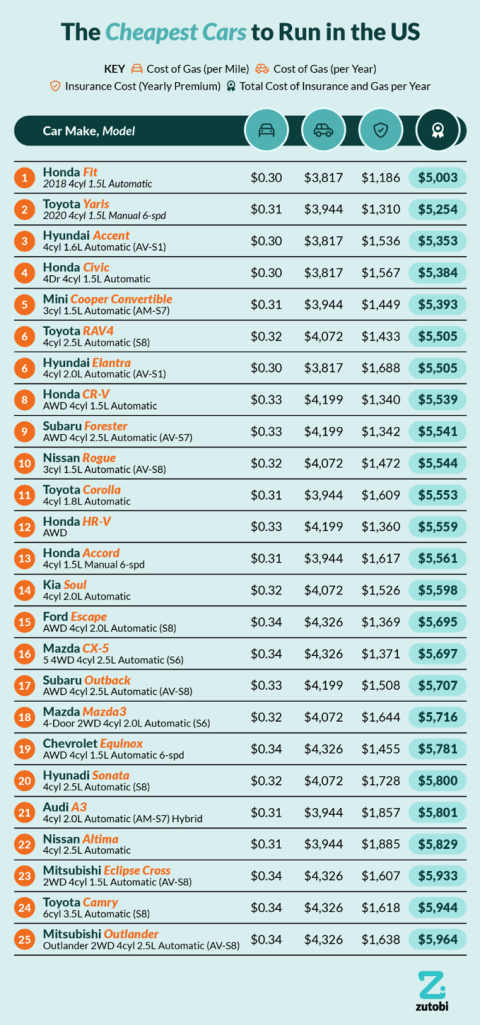 Although the Toyota Camry V6 may be more expensive to run than some cars like the Subaru Outback and Chevrolet Equinox, it’s not the most costly car on the list. Instead, the Mitsubishi Outlander took the bottom spot. According to Zutobi, it can cost an average of $4,326 to fuel up an Outlander for a year and $1,638 to insure it. That means it’s more costly than the average SUV but only $20 more than the costs to run the Camry.