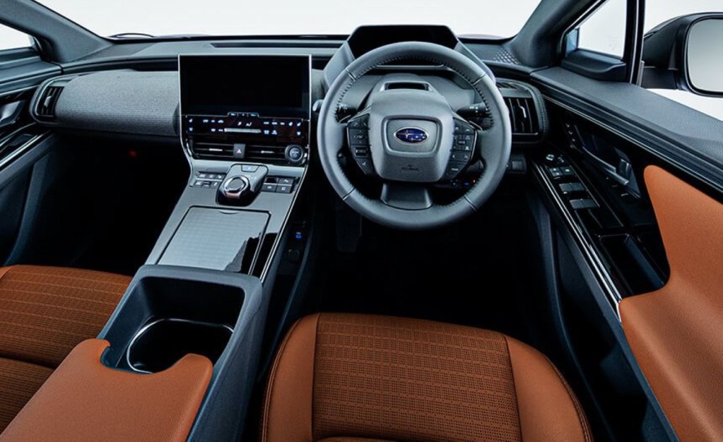 Based on the photos floating around, the 2023 Subaru Solterra includes a high-mounted digital gauge cluster, a large infotainment system, and an elevated center console with a rotary shift knob. It’s noticeably similar to the size and layout of the Toyota RAV4 and bZ4X’s interior.