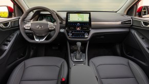 - Pros: The Hyundai Ioniq hybrid models boast excellent fuel economy ratings, comfortable driving experiences, and comfortable cabins with eco-friendly materials. As for the Ioniq Electric, it comes with plenty of standard driver-assistance features and a tremendous warranty.