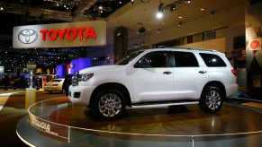 The Toyota Sequoia is known as a very reliable SUV as part of Toyota's lineup. The vehicle has fantastic off-road abilities with its four-wheel drive and high clearance capability. The driver feels invincible in many different conditions with the AWD version, such as snow and rain. The model is well known for its large interior and spacious feel. With its third-row, the SUV comfortably seats 8 passengers.