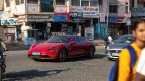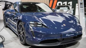The Taycan is a luxury EV produced and sold by Porsche. Headquartered in Stuttgart, Germany, the automaker specializes in high-performance sports cars and crossover SUVs. The Taycan is the brand’s first battery-electric vehicle. It is sized below the Panamera four-door luxury car and above the 911 sports car in the lineup.