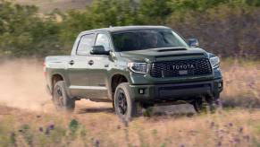 - Pros: The Toyota Tundra full-size pickup truck is a staple in the truck world as it provides good off-road prowess, a comfortable, spacious cabin, and a standard V8 engine.