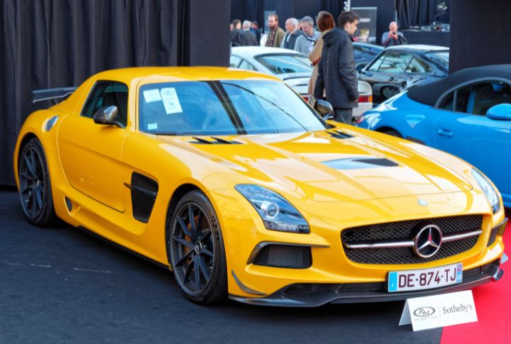 As a front-engine 2-seater, the Mercedes-Benz SLS AMG is a modern icon known for its breathtaking performance and distinctive gullwing doors. This car was designed as a homage to the legendary 300SL, as it blends classic styling with contemporary power. Thanks to the 6.2-liter V8 engine, the SLS AMG could hit 60 mph in just 3.8 seconds.