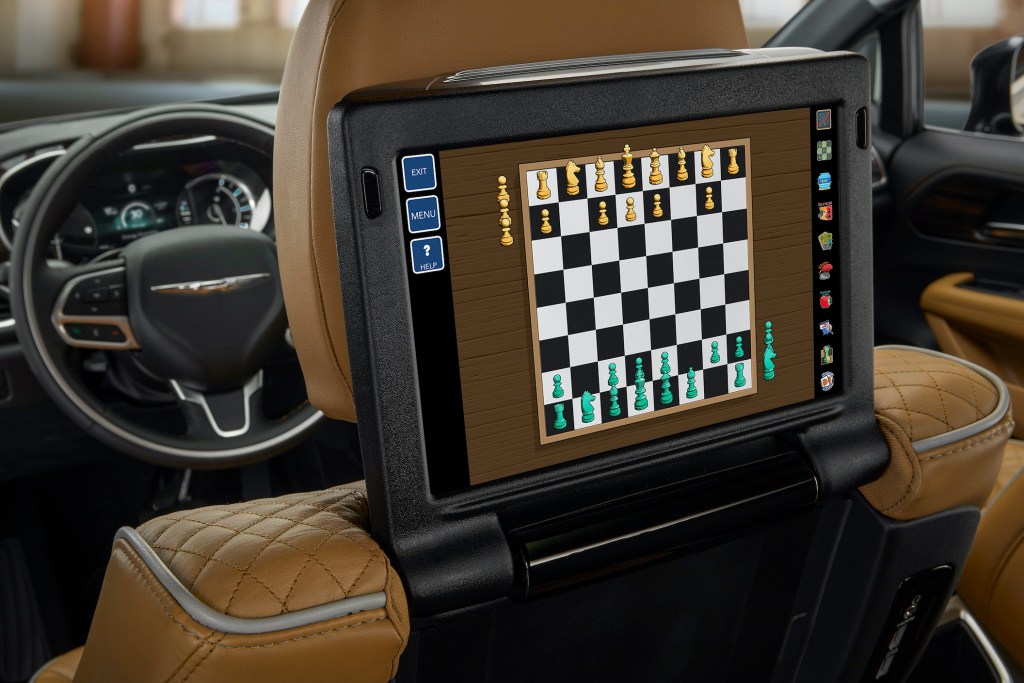 Although this is mostly about the new super-lux van’s luxurious seating and aesthetic, I can’t forget to mention that the tech inside follows suit. Massive screens abound in this soccer-parent mobile. The infotainment screen in the standard model is 8.4 inches, and the Pinnacle gets a whopper at 10.1 inches. Unlike the old 12-inch CRT tv that my mom had in the back of our old safari, the Pacifica has optional built-in 10-inch screens with games programmed in.