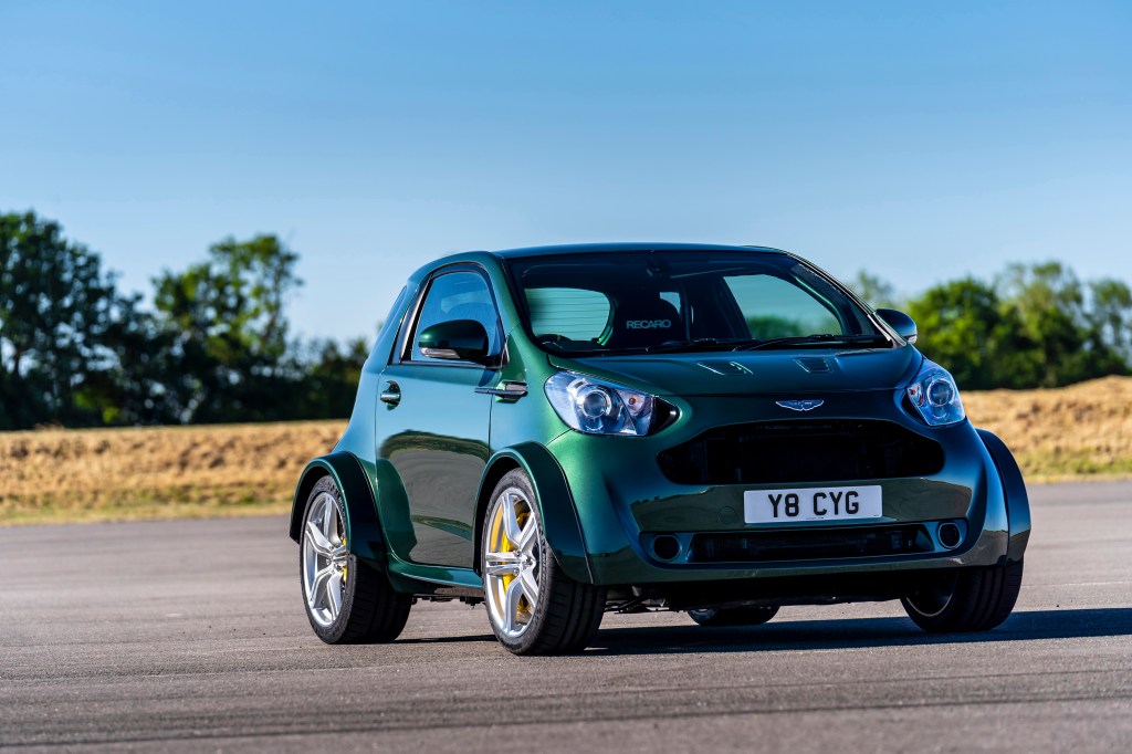 While it looks like a Toyota iQ in most appearance, the V8 Cygnet has a lot of components borrowed from the more popular Aston Martin Vantage S, including the transmission and engine, suspension, brakes, and even the wheels. It has a traditional Aston Martin grille that makes it stand out, too.