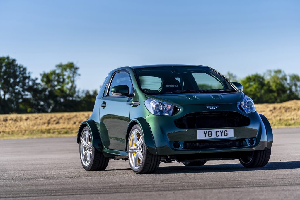 While it looks like a Toyota iQ in most appearance, the V8 Cygnet has a lot of components borrowed from the more popular Aston Martin Vantage S, including the transmission and engine, suspension, brakes, and even the wheels. It has a traditional Aston Martin grille that makes it stand out, too.
