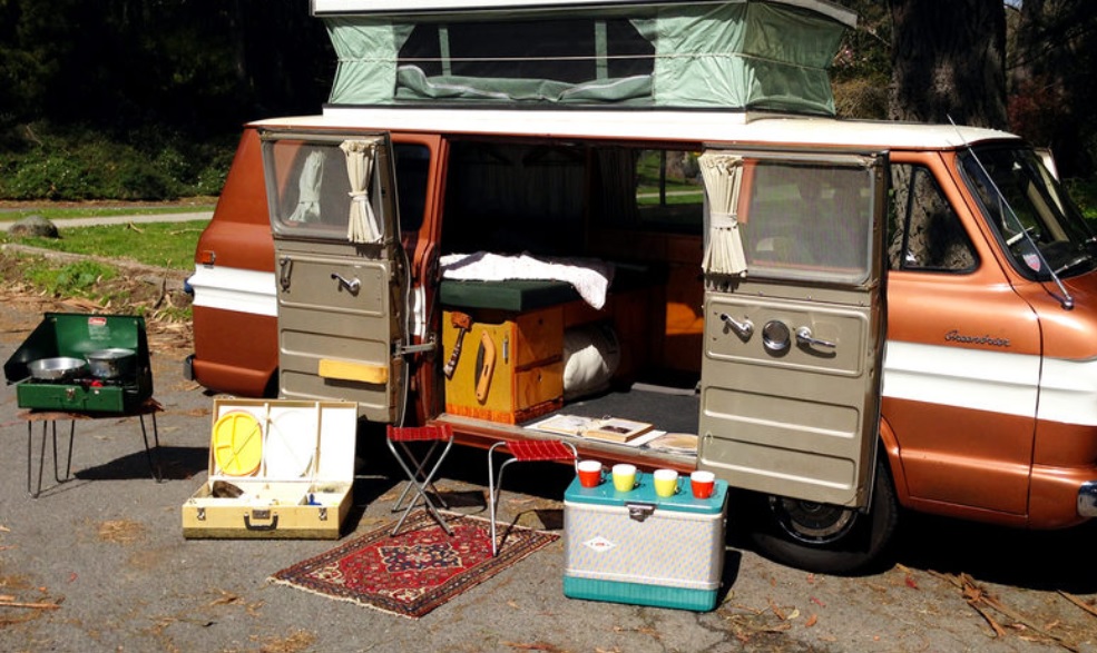 Like the VW Bus, the Corvair Greenbrier offered 3 rows of seats. And, just like the Westfalia, the Greenbrier could be turned into a proper camper. GM offered a catalog of parts, including plywood cabinetry, a sink, icebox, a bed, fold-out tables, a roof-top tent, and various other accouterments. However, MT reports that even after being used for over 50 years, the Corvair Greenbrier rattles significantly less than the VW Bus.