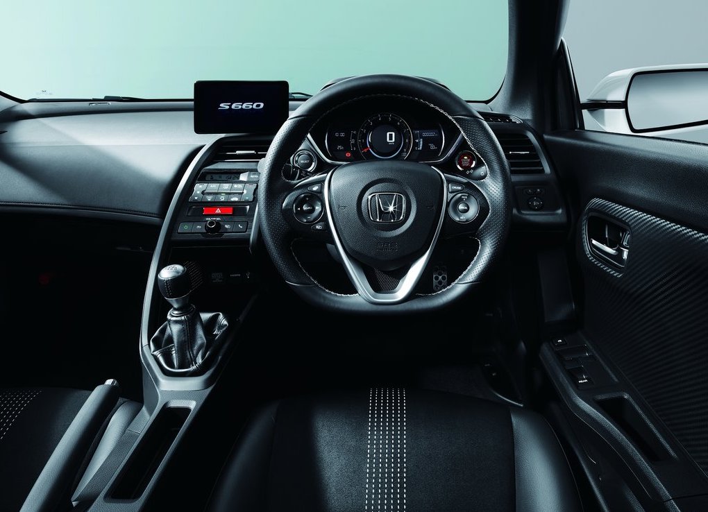 The interior of S660 has two bucket seats and a driver-centric dashboard. The HVAC buttons are neatly laid out on the center stack and small touchscreen sit front and center. There’s not much in terms of storage, as there’s barely even a glove compartment. In fact, you’re lucky enough to have one cupholder.