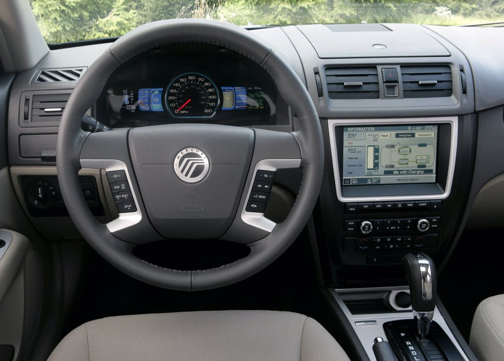 Nowadays, car interiors are filled with screens and virtual displays, but back in 2010, you would be lucky if a car came with a screen larger than five inches. In that case, the Milan Hybrid was actually somewhat ahead of its time in that the instrument panel had a single gauge pod in the middle with two screens that flanked it on either side. One screen displayed the fuel gauge –