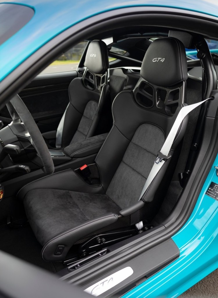 In terms of options, buyers can equip their Porsche Cayman GT4 with carbon-ceramic brakes that weigh half that of the standard steel ones. There are also well-bolstered sport seats available. And if you genuinely want to take the GT4 racing, the Club Sport Package adds a steel half-cage, fire extinguisher, and HANS-compatible 6-point racing harness.