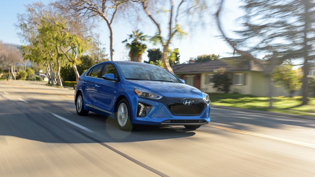 The Hyundai Electric Ioniq gets some pretty impressive gas mileage, with a reported 145 miles per gallon in the city and 121 miles per gallon on the highway. The Ioniq can drive up to 170 miles using just the electric motor, so you have a pretty good chance of making it work – if your office is still open – or the grocery store and back home to put it on the charger without ever even using the gas engine.