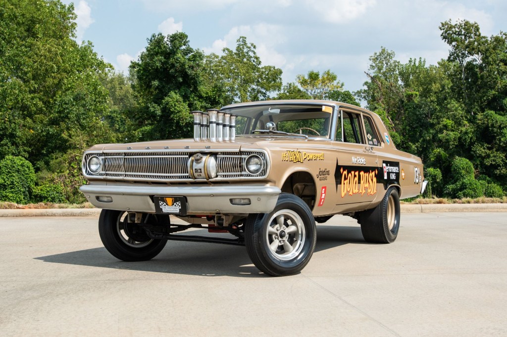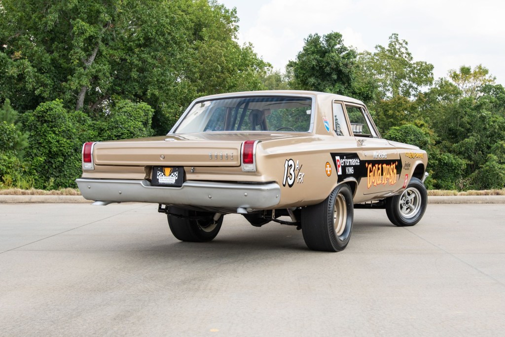 RK Motors in Charlotte, North Carolina, has the consignment. The factory-like gold paint, period-like graphics, and contingency decals scream the mid-1960s. As far as we know this 1965 Dodge Funny Car can be driven on the street which was not the case back in the day.