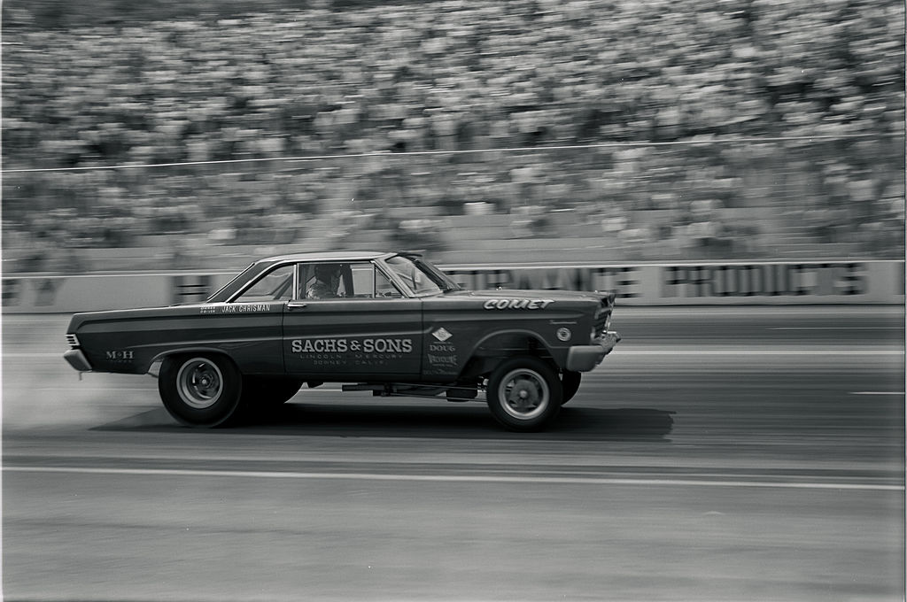 Eight-second passes for what looked like production sedans were considered surreal. In just a couple of years, Funny Cars would run mid-six-second times in the quarter-mile. This from the continuing combination of further reduction of weight combined with more power. Some of that extra power was from using stronger mixtures of nitro. Eventually, racers would run almost 100% nitro, but not in these early Funny Car days.