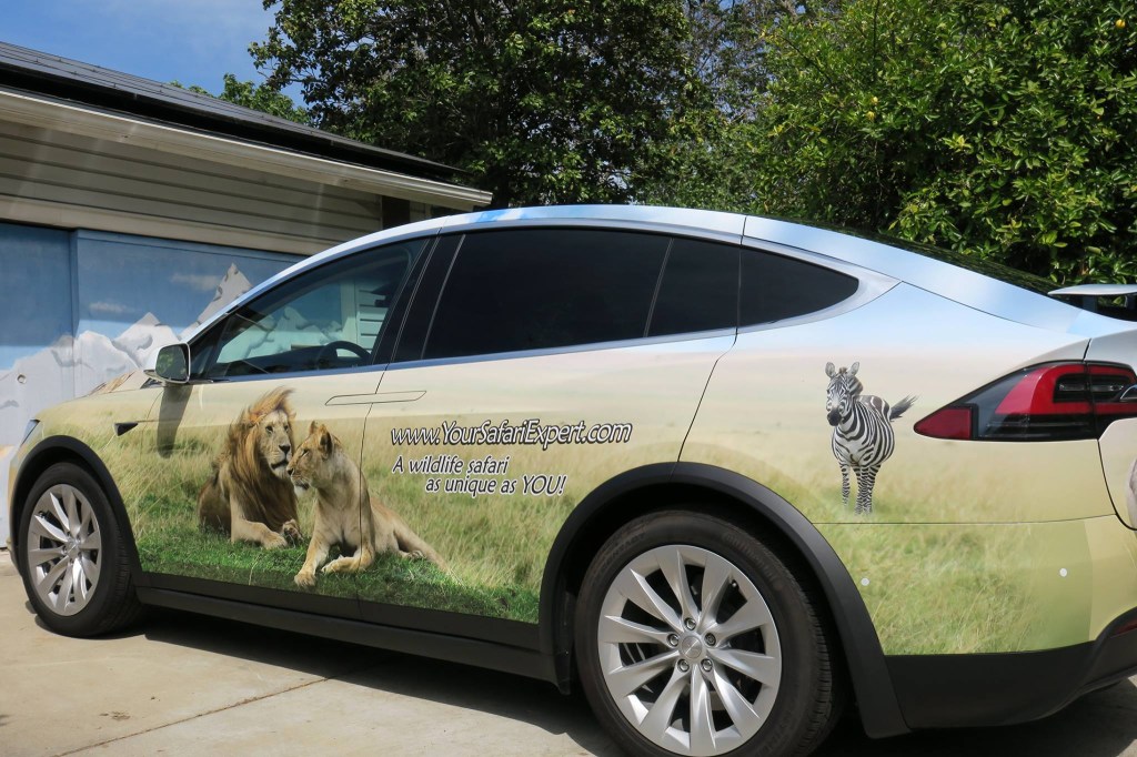 Tesla fans recently went wild on twitter over this “safari wrapped” Model 3 listing. The 2017 Tesla Model 3 was wrapped to represent a company that provides expert safari tours to Africa.