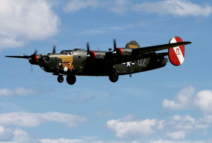 Since Consolidated wanted to surpass the B-17 by developing the B-24, the engineers ensured they installed better features. Besides its redesigned wing that reduced drag by 15%, it had an extended range, heavier bomb load, tricycle landing gear, higher top speed, and advanced wing design. It also had turbo-supercharged Twin Wasp Engines, increasing speed from 273 mph to 310 mph and meeting the U.S. military’s performance expectations. After production, the U.S. deployed the B-24 to British lines and nicknamed it the “Liberator.”