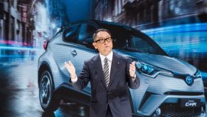 Wow! Toyota CEO Akio Toyoda is throwing shade at Tesla. Other companies have had their own ways to debase Tesla but claiming that “Tesla isn’t a real car company” is a new one. Is this desperation or does Toyota know something nobody else knows? Is Tesla a real car? Do you agree? Mostly Japanese higher-ups …