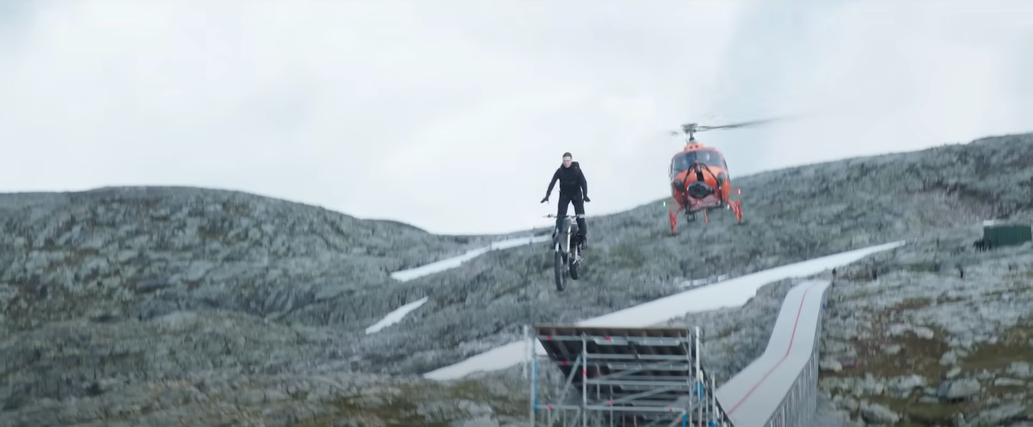 Tom Cruise performs all his own stunts. The Mission: Impossible franchise has become a vehicle for Cruise’s increasingly wild skydiving, rock climbing, and motorcycle riding stunts. Mission: Impossible — Dead Reckoning is no exception, with protagonist Ethan Hunt jumping a motorcycle off a cliff before deploying his parachute.