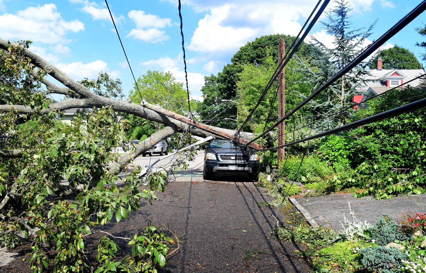 An accident sent a car flying into power lines