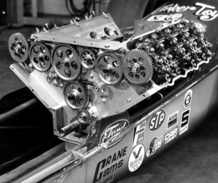 Towards the end of the SOHC’s life in drag racing “Sneaky” Pete Robinson pitched all of the chain mumbo-jumbo and went with an elaborate gear-drive system. But he was also experimenting with aerodynamics which contributed to a horrible crash that took his life before the soundness of his gear-drive SOHC could be fully realized.