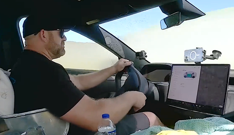 Filling a seven-foot artificial lake to show Tesla’s “Boat Mode” was no problem. While a pal on the far end of the lake waited with a lead attached, “Chillin’ With Chet” prepped his car by sealing the cabin as much as possible. Then he began his dissent.