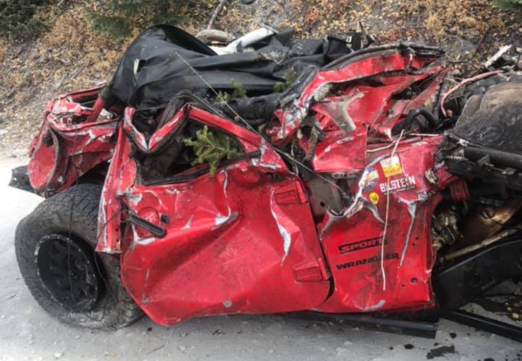 The treacherous Black Bear Pass in Telluride, Colorado, was the scene of a terrible accident. A woman inside of the Wrangler was thrown as the Jeep tumbled down the steep mountain with a puppy inside. She received serious spinal injuries and a GoFundMe page has been set up to help with expenses. Had she not been thrown from the spinning Wrangler she would most assuredly have been killed.