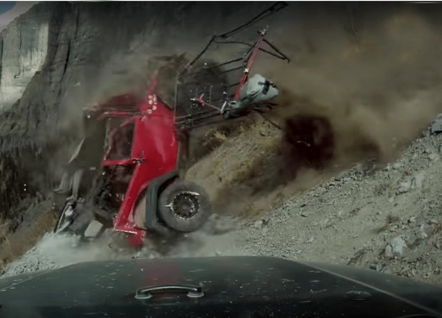 The Wrangler fell past six switchbacks before landing on a flat road below. At the second switchback, the woman was thrown from the Jeep. The YouTube video was filmed by a dashcam in another off-road vehicle as the Jeep twisted down the mountain directly in front of them. You can see how violently the Wrangler tossed and spun as it rolled down the steep bank.