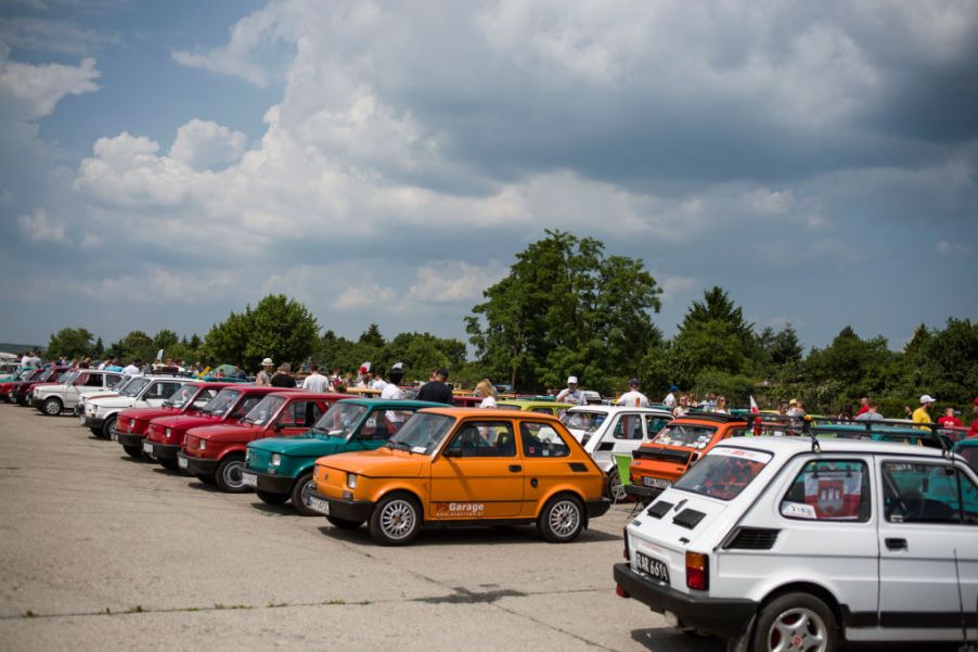 The Fiat 126 was a compact car produced at the Italy and Poland Fiat facilities over several decades. They might not look like they are large enough to, but they had back seats that increased the overall capacity of the car to a total of four people, though it might not be too comfortable.