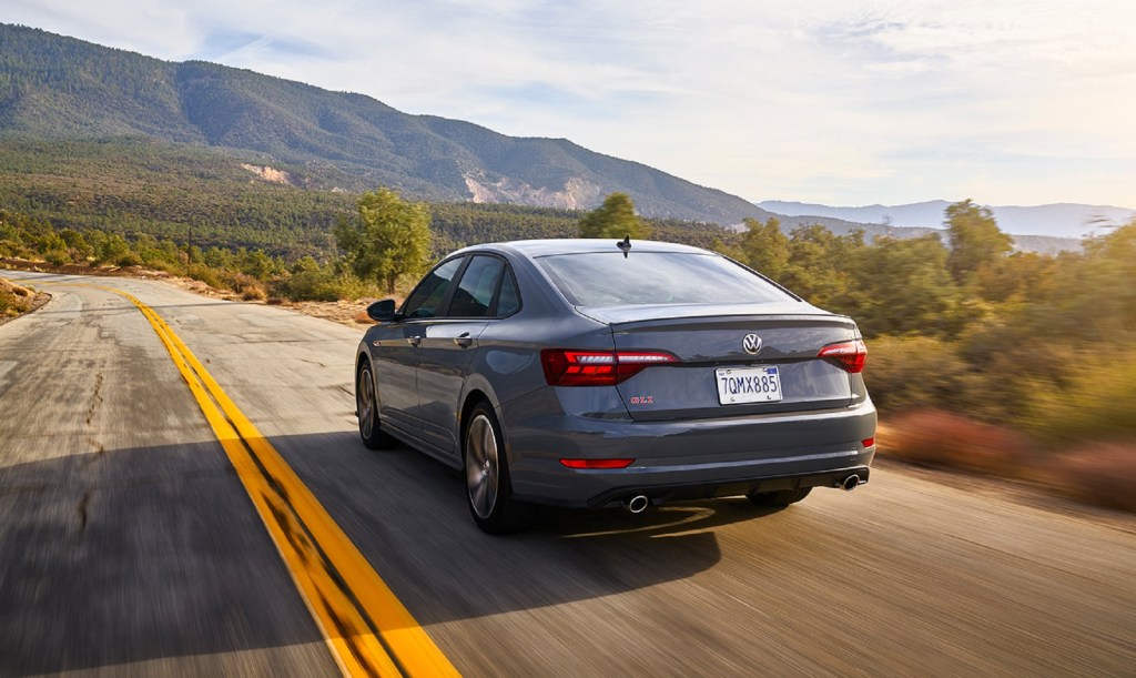 Although both the 2020 Ford Mustang EcoBoost and Volkswagen Jetta GLI have turbocharged four-cylinder engines, they don’t drive the same wheels. The Mustang is a rear-wheel-drive coupe, while the Jetta GLI is a FWD sedan.