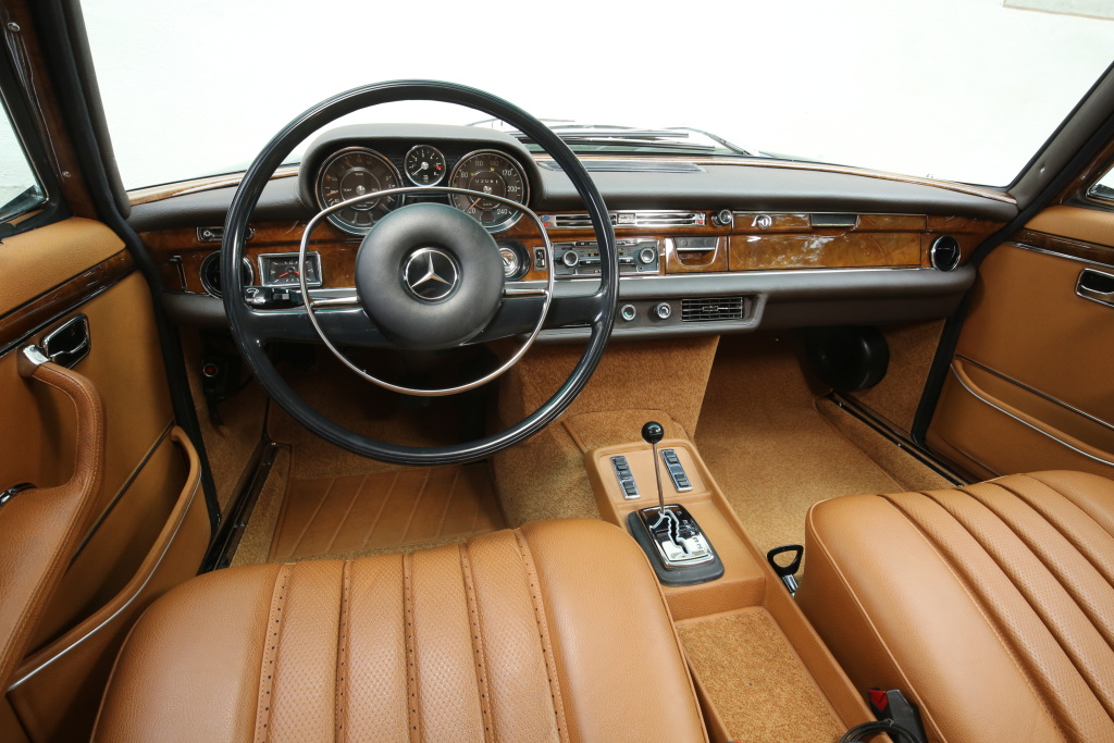 That high curb weight is due to the Mercedes 300SEL 6.3’s luxury features, which are fairly advanced for the time. This sleeper sedan has 4-wheel vented disc brakes, power steering, power windows and locks, and self-adjusting air suspension. And the options list includes things like A/C, a power-operated sunroof, and folding rear tables.